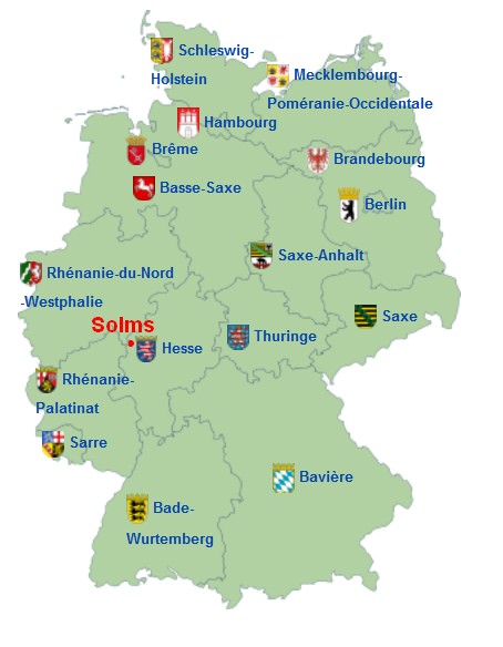 NB : le texte original est imprimé en allemand « gothique » et le papier est déchiré à certains endroits, ce qui a empêché de lire tous les noms et de trouver toutes les villes. (voir fac-simile ci-après) Vous pourrez en lire une traduction que j'ai fait vérifier par un locuteur. Les villages qu'ils ont habités sont groupés dans le « canton de Solms » :